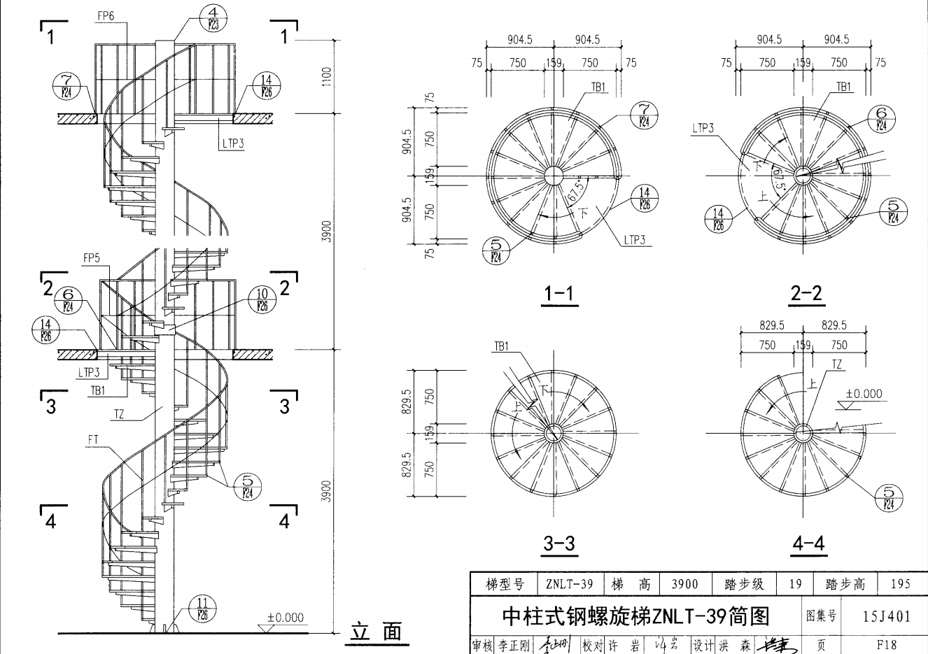 梯宽均为 050mm750 阳,层高为 2. 70 ~ 6. OOm ,平台栏杆高度均为1 中柱式钢螺旋梯按每周 制扇形钢踏步板、钢平台板等构件现场安装焊接组成16 级踏步布置,由钢管立柱、预 中柱式钢螺旋梯的立柱采用中 C20159 12 热轧无缝钢管,内填 细石混凝土。铜管立柱连接长度依材料长度而定,但每 梯段内不应超过一个接头中柱的基础由项目设计确定,本图集仅为示意 中柱式钢螺捷梯的涂装要求为热镀锌